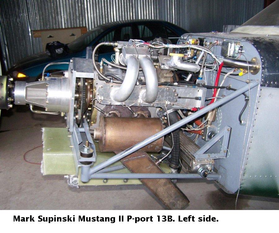 The stock Mazda 16B is not a P-port engine. It is a side port engine. However it is fast and low cost to modify it as a p-port engine by boring holes in the rotor housing and welding in tubing. This improves the volumetric efficiency across the RPM range of interest by 20% and so too the HP. The engine is capable of a BSFC of 0.47 which is in the range of most light aircraft engines. Perhaps 5% worse than the best. In turbo compound form it is theoretically capable of a BSFC of 0.4 or below. It is also capable of running in the range of 18:1 to 20:1 air fuel ratio at high RPM and low load. Our theory on why this is possible is due to the fact the engine is a rotating combustion chamber engine. This forces the heavier fuel molecules out near the spark plugs. In effect it is naturally stratified charge. The red line on the stock 16B engine is 8500 RPM and a P-port 16B engine will be making close to 300 HP or more at 8500 RPM. Consequently it is a better high RPM high HP aircraft engine than a low RPM low HP car engine. It's exceptional power to weight ratio more than compensates for the slightly higher fuel burn of a piston engine. This is a picture of such an engine installed in a light aircraft.