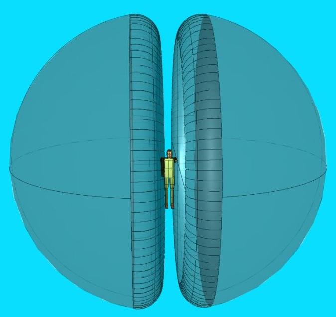 Probably 24 feet diameter is over kill. Inflation is near instantaneous, unlike a parachute, with two explosive charges such as blank shotgun shells. One needs about 500 feet to make a parachute work. Many Hollywood stunt men have repeatably jumped off ten story buildings and landed on air bags.