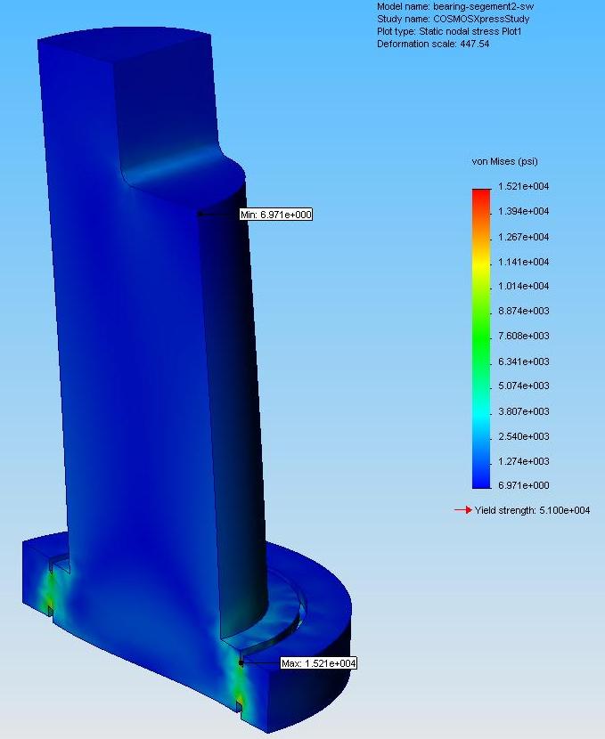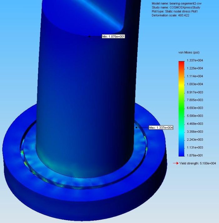 Here are a couple of FEA on the GRP hub thanks to H & J Johnson. Here is what Jarret said about it. "I loaded this face up w/ 1800lb's [it's 10" from the ball CL] It's plenty strong.. has a base FOS of 3+. I also did a model w/ a section view to show internal stresses. This was w/ 1020 steel."