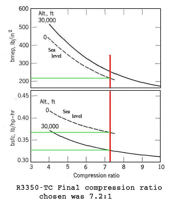 A TO4 turbo charger weighs 16 pounds. A gear box and belt drive for it weighs about 3 or four pounds. In fact the turbo compound engine really pays off big time at high altitude. My guess is 350 MPH. Which will beat any personal jet on MPG by a factor of five or more if not on speed. Here is a chart for a R3350 turbo compound engine fuel consumption as a function of altitude. As you can see both the power is up and the fuel burn per HP generated is down while so is the aerodynamic drag. This is due to less back pressure on the turbo compound turbine.