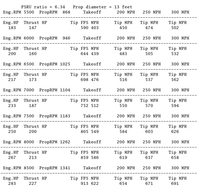 Rotor tip speed will be limited to 590 MPH or there abouts. Engine RPM will be limited to about 7000 and HP about 233 with a Ford 2.85:1 planetary at cruise. A turbo compound would make a large difference and give us about 325 HP at 7500 RPM on the top end.